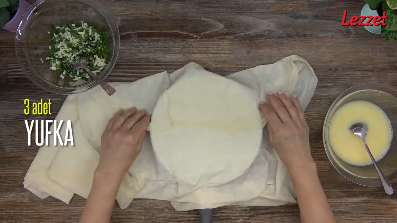 Ayçiçek yağını geniş bir tavaya alıp yufkanın birini kenarlardan sarkacak şekilde yayın.